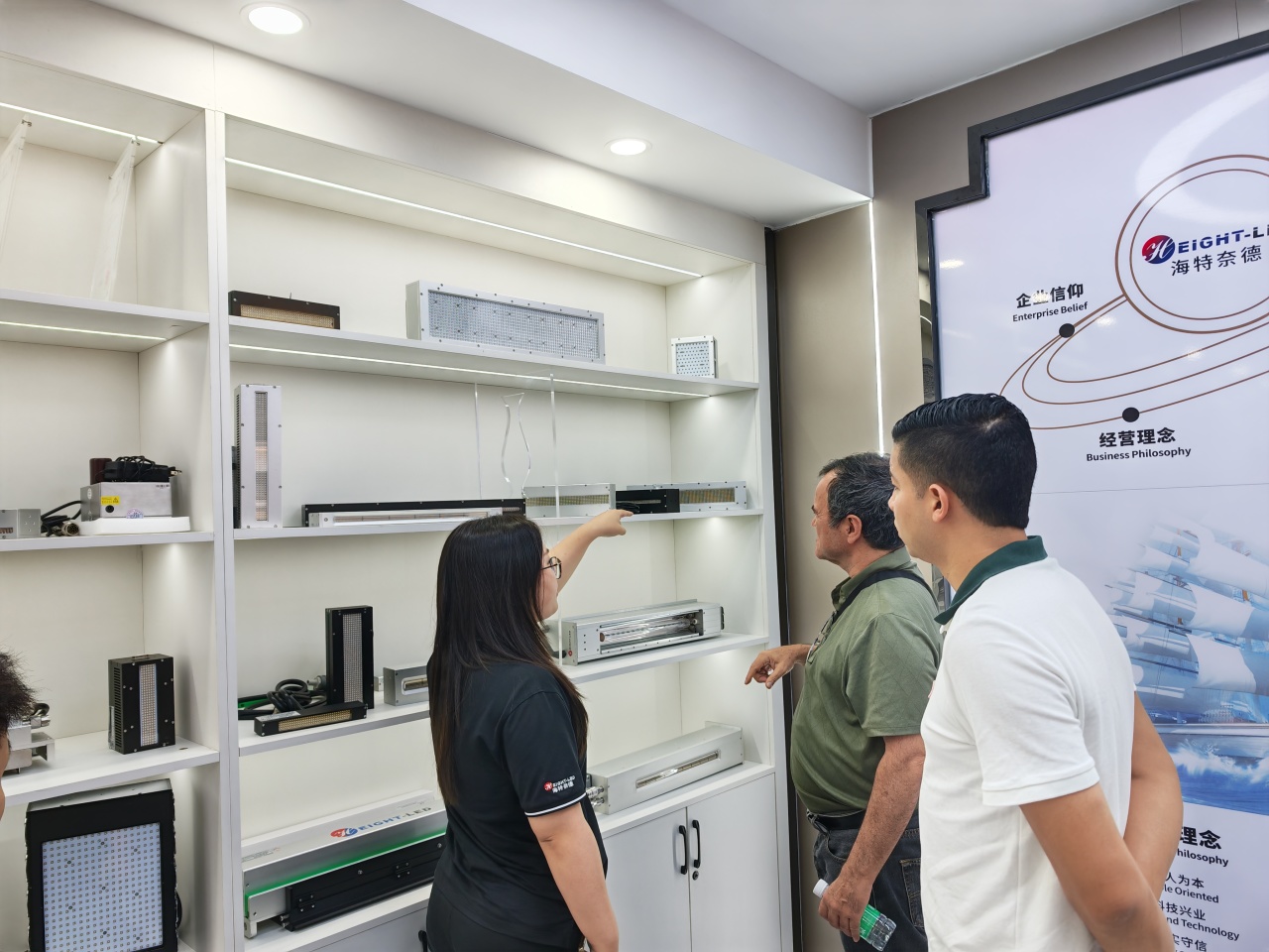 在展廳里,我們并肩探討,從展板上的藍圖到柜中的精密光源。讓最新的UV科技,匹配產線最切實的需求。每一次觀點交融,都在夯實合作前行的路基。