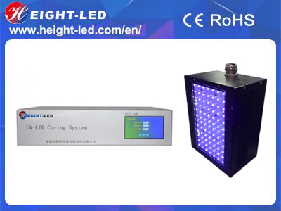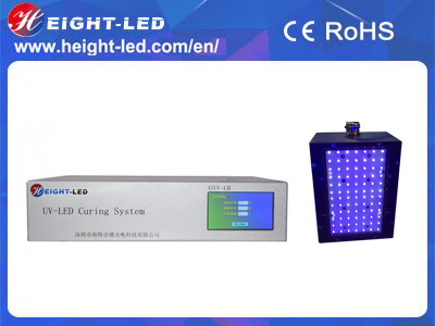 This is a high-performance UVLED  curing system, the system includes the controller, UVLED irradiation head and cable. UVLED head with imported high-intensity UV LED integrated UV spectral wavelength of 365nm, 385nm, 395nm, 405nm, the use of forced air cooling, the effective curing area of 135X80mm, support for external signal input and trigger, can be equipped with semi-automatic or fully automated production line .