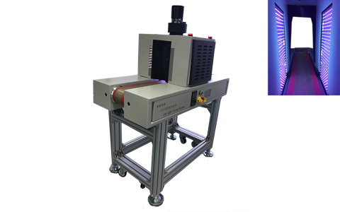 This is a high-performance UVLED curing machine system designed for the curing of lithium battery module . The system mainly includes control system, UVLED irradiation head and conveyor belt, with two sides irradiation, it has a good curing effect on the special parts which can not cure by top uv system, and the whole machine and uv led head can be customized.